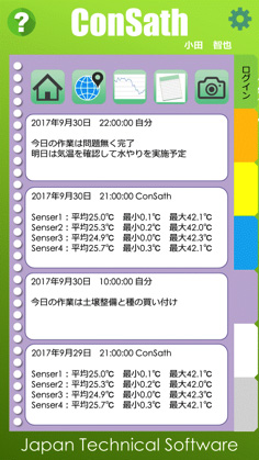 管理業務の内容を日記形式で記録出来ます。グラフとも併せて見ることで管理方法の分析にもお役立ちします。