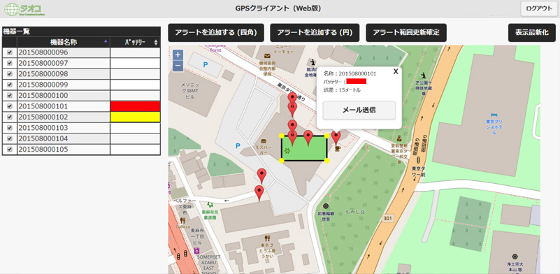 JavaScriptAPIを介して提供する位置情報サービス。スマホや小型GPS端末の位置情報を取得し、Webページの地図に表示。
